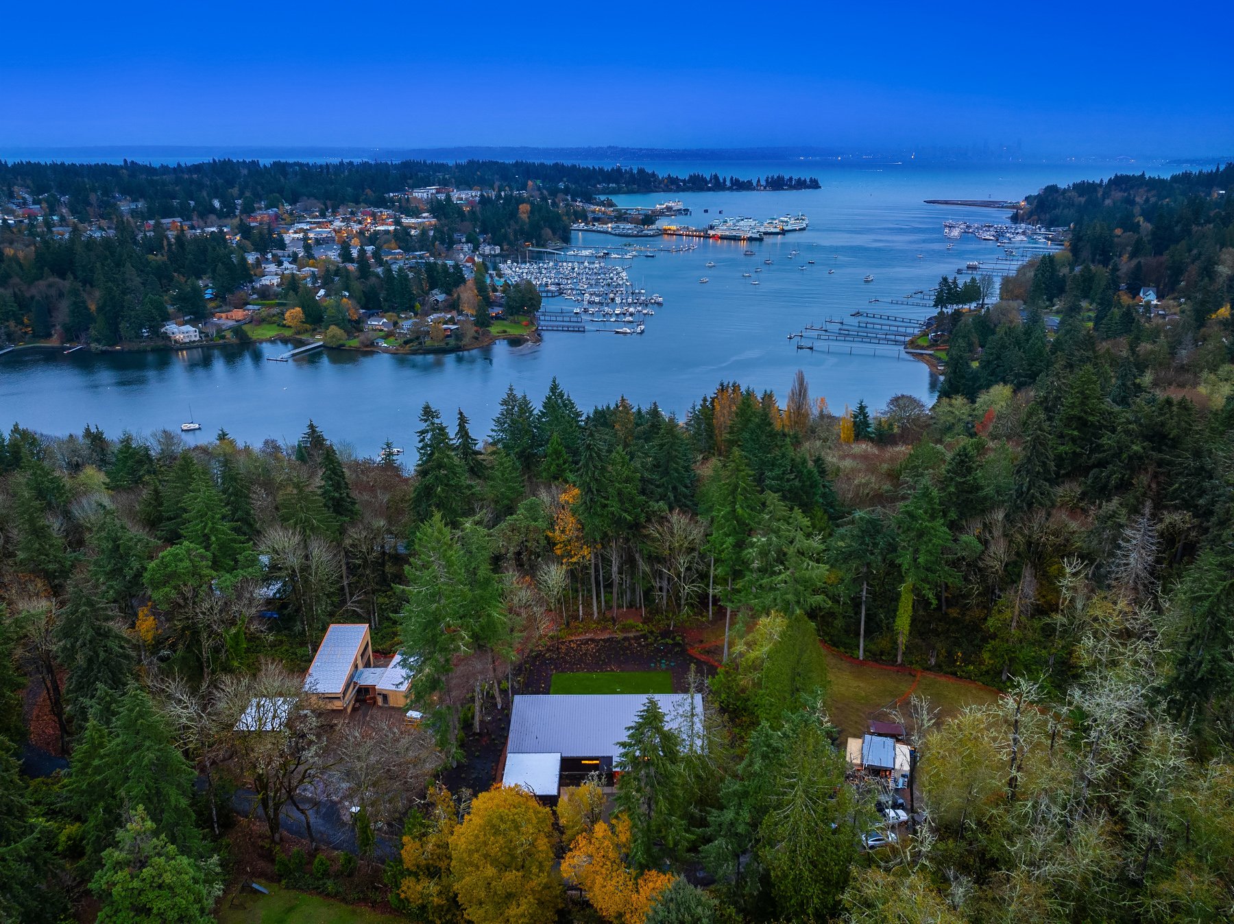Situated in beautiful Eagle Harbor, the community evokes the charm of East coast seaports, with scenic views reminiscent of Maine or Connecticut. The five-mile shoreline offers varied perspectives-from secluded, cove-like inlets to open panoramas showcasing Seattle’s skyline and the grandeur of Mount Rainier. This lively harbor, filled with sailboats, kayaks, and ferries, provides a tranquil maritime lifestyle. Just a short ferry ride to Seattle, Fujinari Preserve is a private retreat that feels worlds apart.